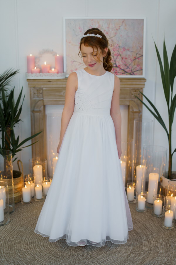 Dieses zauberhafte Kleid besticht durch seine edle Form. Wunderschönes Kleid aus Satin, Organza und Perlchen.